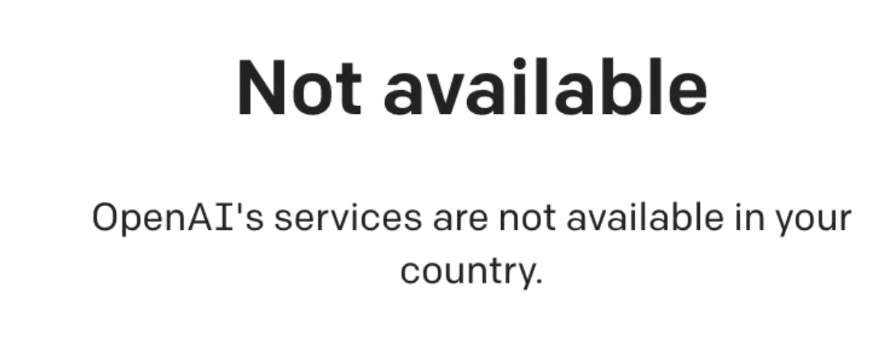 当然,有一些人会在这里遇到一个问题,会出现提示说不能在当前国家服务: Not available OpenAI's services are not available in your country.
