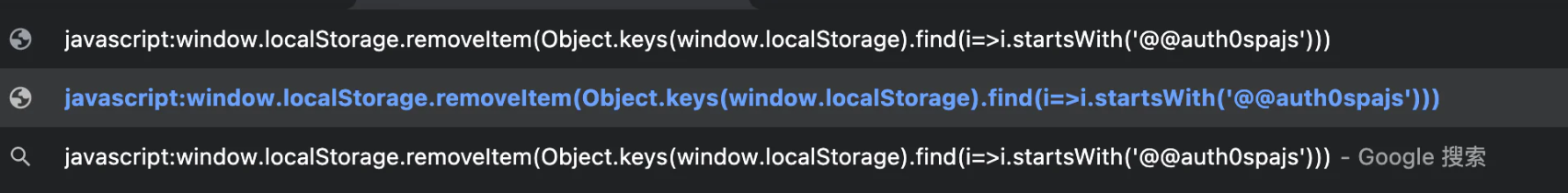 window.localStorage.removeItem(Object.keys(window.localStorage).find(i=>i.startsWith('@@auth0spajs')))